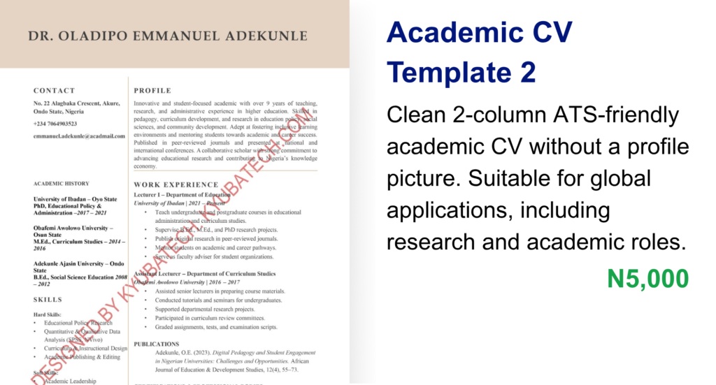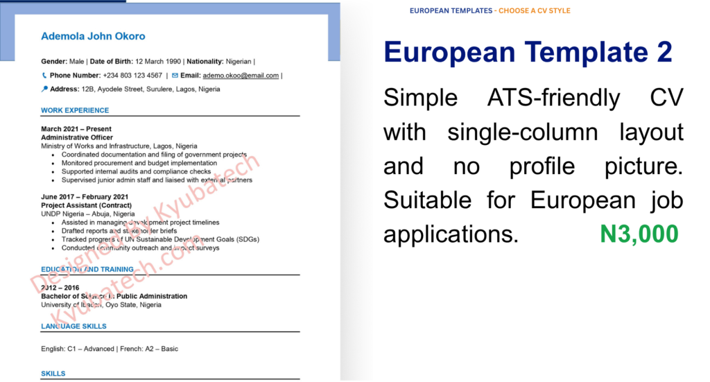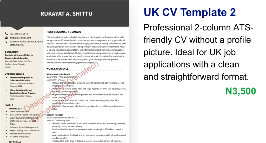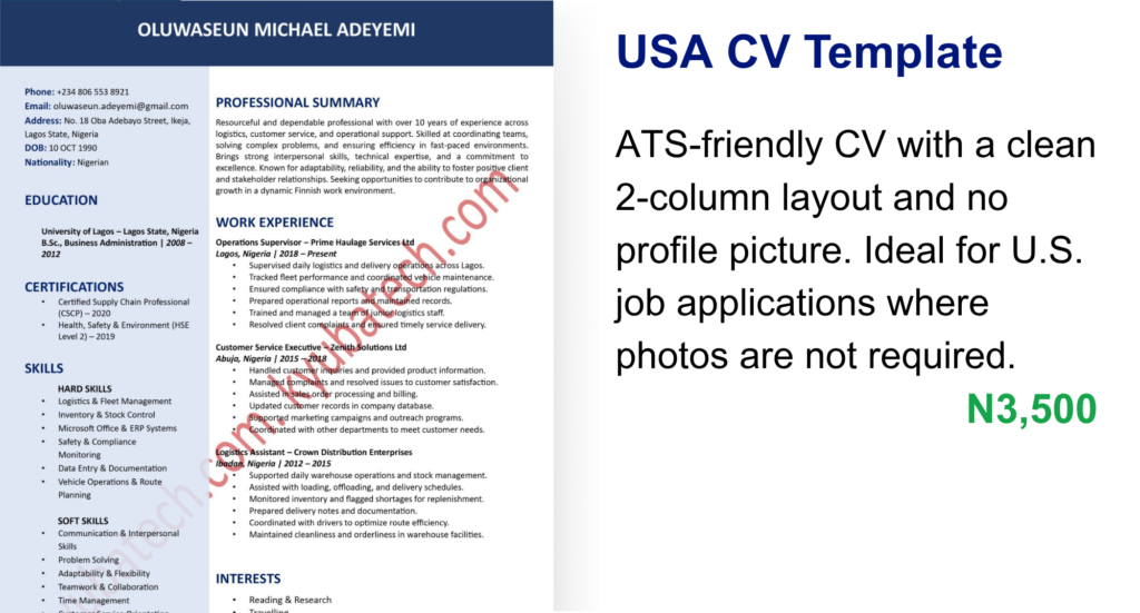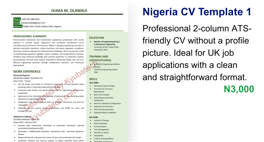 Well-structured CV templates designed to meet Nigerian hiring standards and improve your chances with local employers.