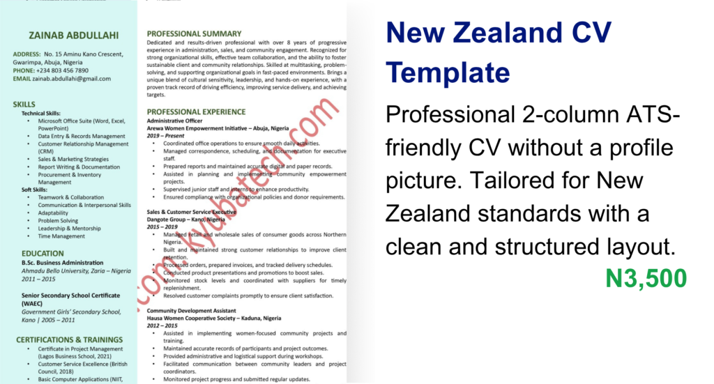 ATS-friendly CV templates designed for Western job markets such as the USA, UK, New Zealand, etc.